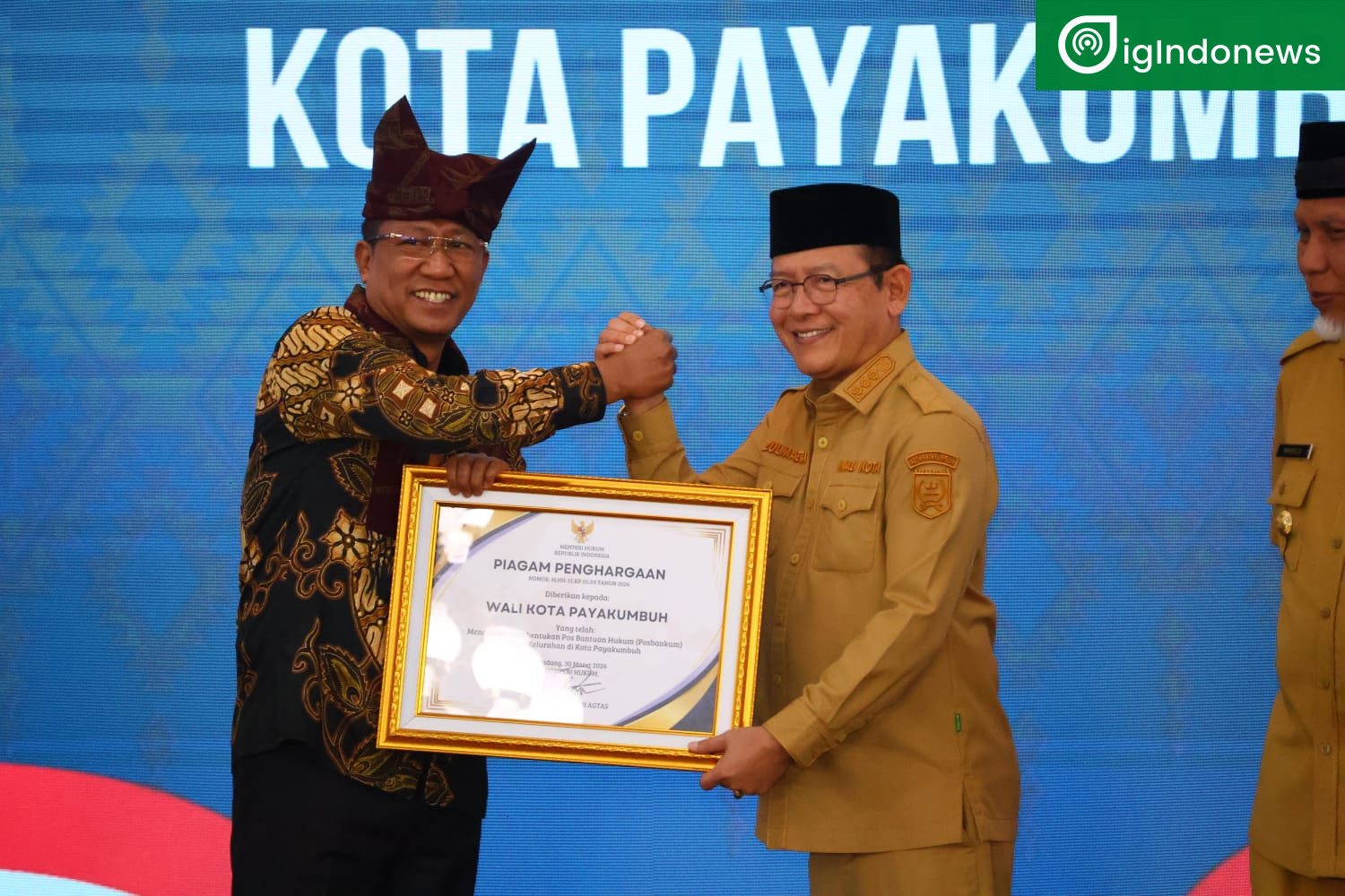 Wali Kota Payakumbuh, Zulmaeta, Terima Piagam Penghargaan Dari Menteri Hukum