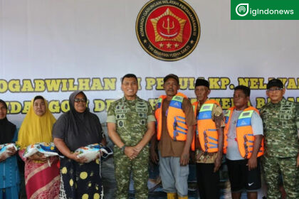 Kogabwilhan III menyalurkan bantuan sembako dan *life vest* kepada ratusan nelayan beserta…