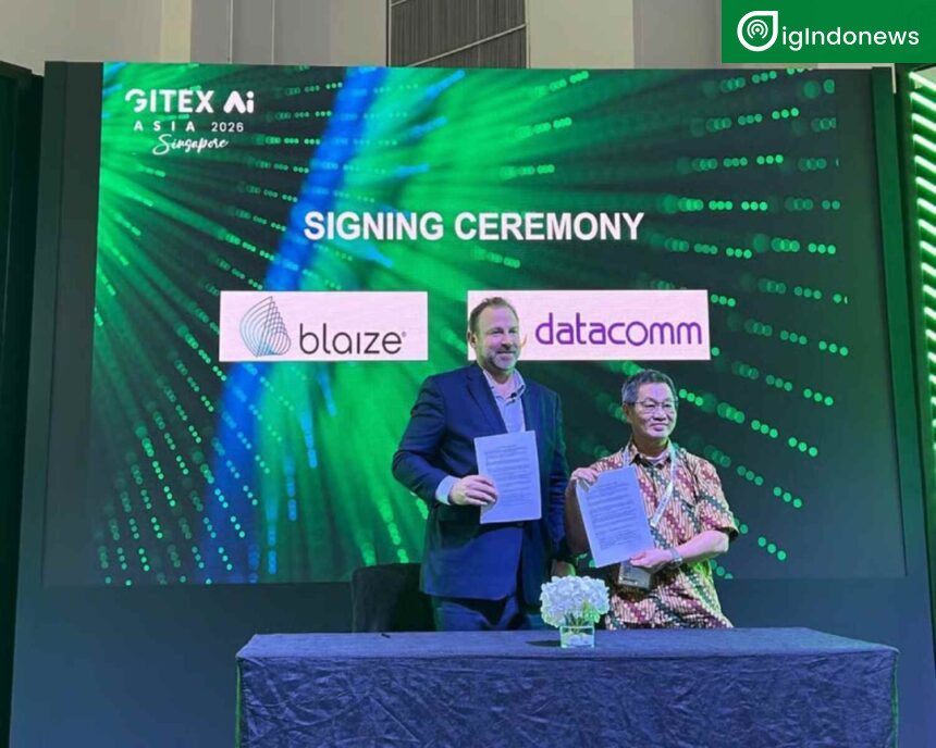Digindonews.com — Blaize Holdings, Inc (“Blaize”), perusahaan global di bidang komputasi AI yang programmable dan hemat energi, bersama PT Datacomm Diangraha (“Datacomm”), salah satu penyedia layanan TI terkemuka di Indonesia, resmi menandatangani Nota Kesepahaman (MoU) untuk aliansi teknologi dalam mengeksplorasi potensi solusi AI inference di seluruh Indonesia. Penandatanganan dilakukan dalam seremoni di Gitex Asia 2026, Singapura, sebagai langkah awal komitmen kedua perusahaan dalam mendorong pemanfaatan AI yang lebih aplikatif di pasar Indonesia.