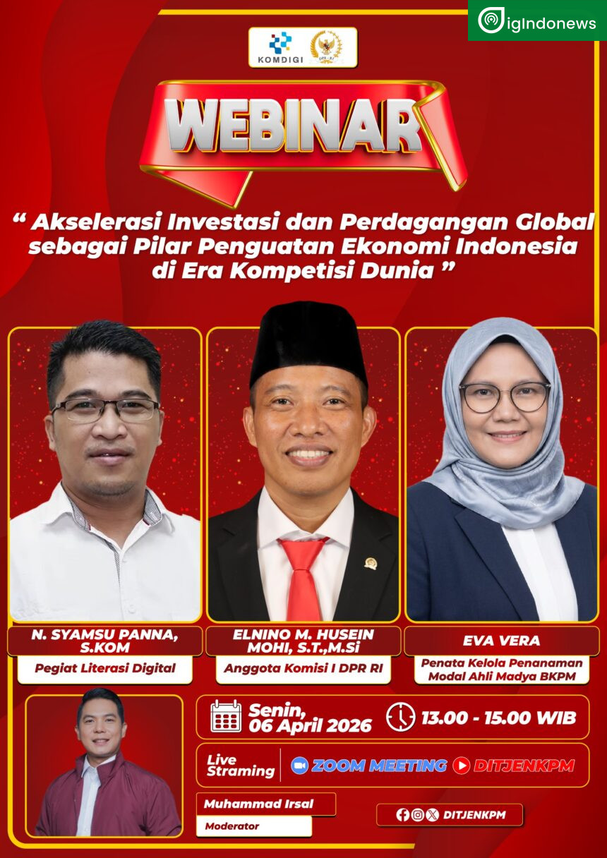 DigIndonews.com, Jakarta – Di tengah ketatnya persaingan global, Indonesia dituntut untuk tidak hanya menawarkan potensi, tetapi juga memastikan kesiapan ekosistem investasi yang kompetitif dan berkelanjutan. Hal ini menjadi sorotan utama dalam webinar nasional yang membahas akselerasi investasi dan perdagangan global.