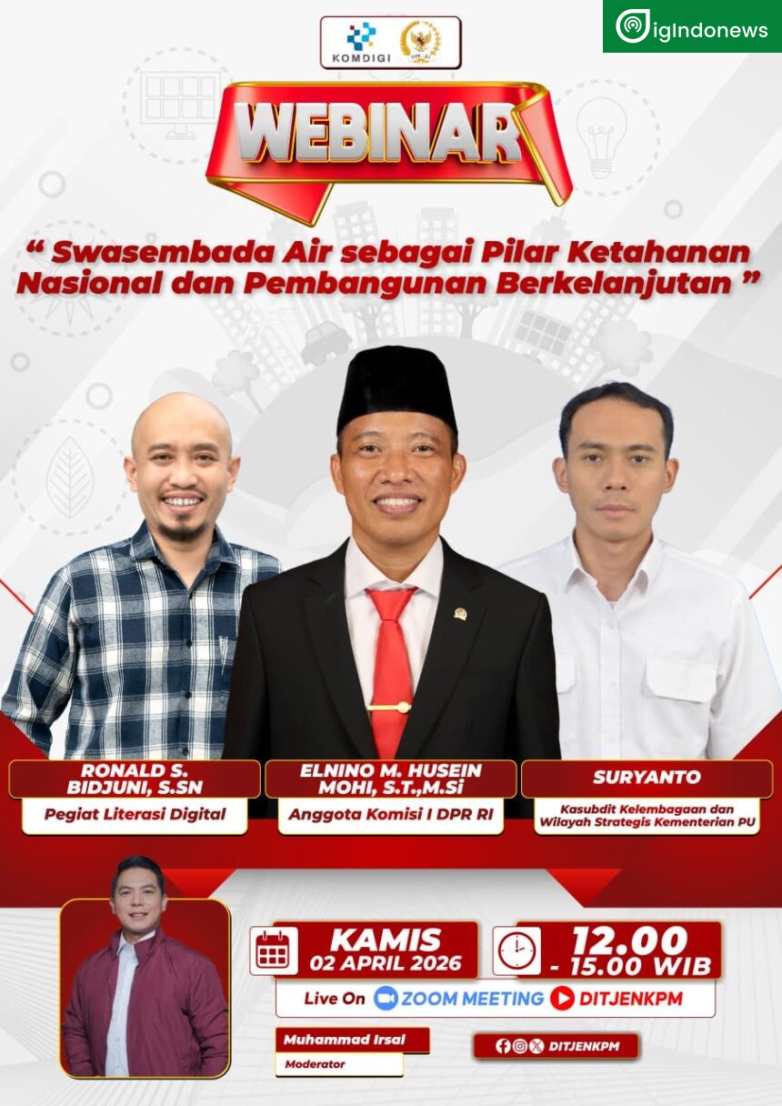 Digindonews.com, Jakarta – Transformasi digital dinilai menjadi faktor kunci dalam mendorong percepatan swasembada air di Indonesia. Hal ini disampaikan dalam webinar nasional bertema “Swasembada Air sebagai Pilar Ketahanan Nasional dan Pembangunan Berkelanjutan” yang digelar pada Kamis (2/4).