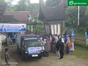 H. Ir. Mulyadi bersama anggota DPRD Dodi Arestu A. Md (putra daerah yang terdampak), menyapa warga dan menyerahkan bantuan sembako di Nagari Koto Tinggi.