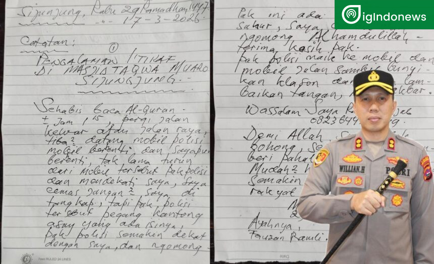Kegiatan yang dilakukan secara konsisten ini pun mendapat apresiasi dari masyarakat. Hal tersebut terlihat dari surat tulisan tangan yang diterima Kapolres Sijunjung pada Rabu (18/03/2026) pagi dari seorang warga bernama Fauzan Ramli.