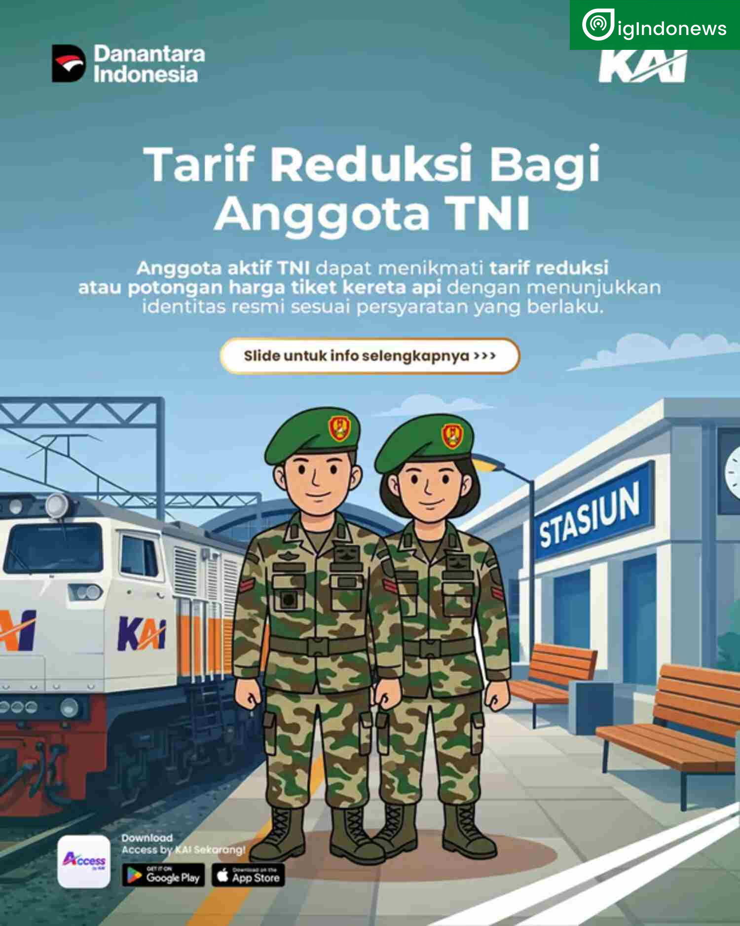 KAI Divre III Palembang Perpanjang Fasilitas Reduksi bagi Anggota TNI