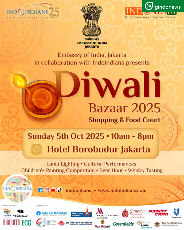 Digindonews.com – Kedutaan Besar India di Jakarta, bekerja sama dengan Indoindians, dengan bangga mengumumkan penyelenggaraan Indoindians Diwali Bazaar 2025 yang akan berlangsung pada Minggu, 5 Oktober 2025, di Hotel Borobudur, Jakarta, mulai pukul 10.00 hingga 20.00 WIB.