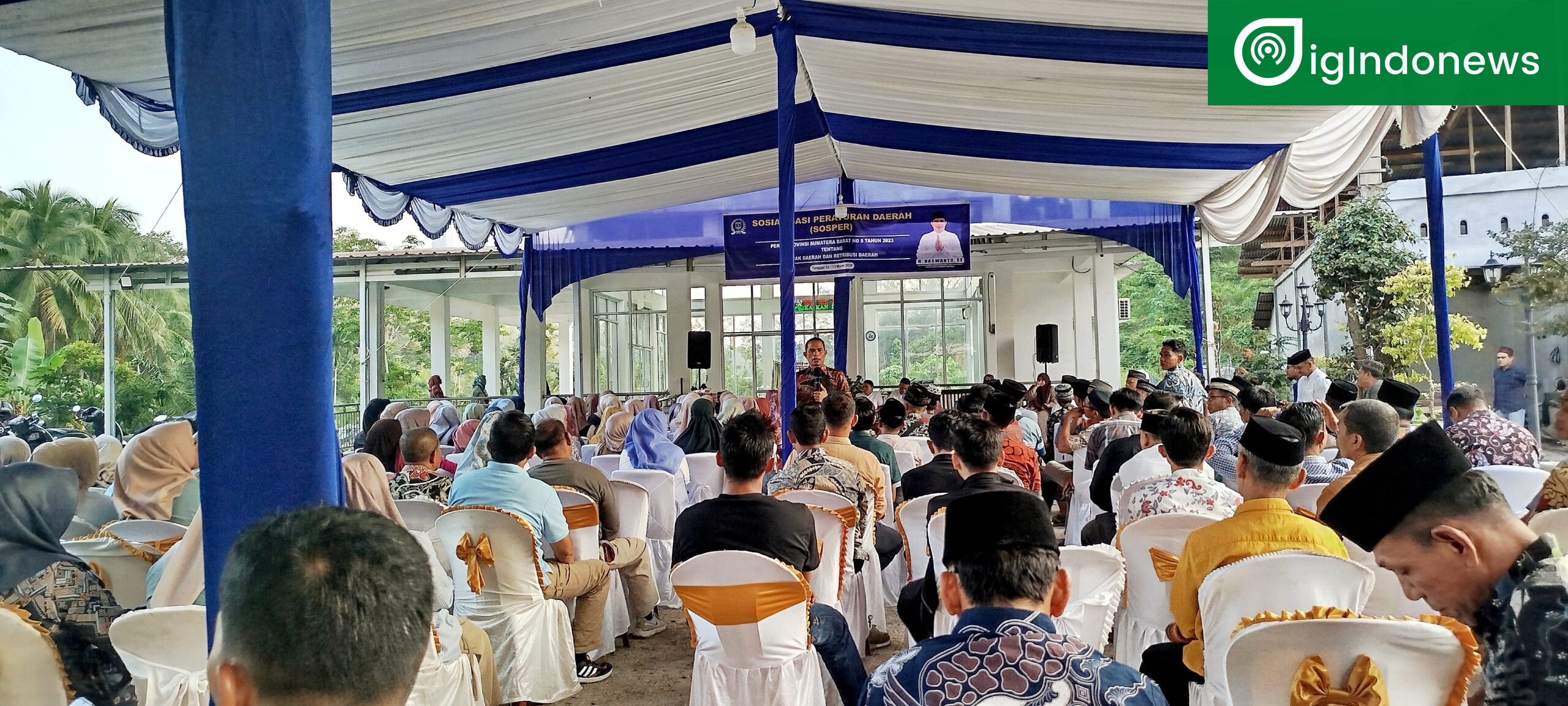 DIGINDONEWS-Anggota DPRD Provinsi Sumatera Barat dari Fraksi Partai Amanat Nasional (PAN), H. Daswanto, SE, melaksanakan kegiatan Sosialisasi Peraturan Daerah (Sosper) Provinsi Sumatera Barat Nomor 8 Tahun 2023 tentang Pajak Daerah dan Retribusi Daerah, Jumat (13/3), di Muaro Bodi, Kabupaten Sijunjung.