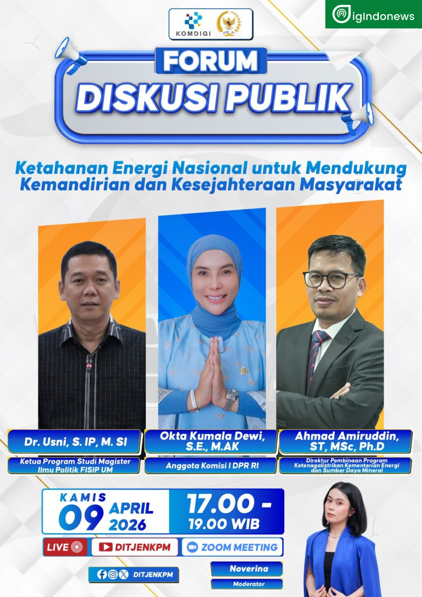 DigIndonews.com, Jakarta, 9 April 2025 – Ketahanan energi nasional menjadi isu strategis yang semakin krusial di tengah dinamika global yang tidak menentu. Dalam webinar bertajuk “Ketahanan Energi Nasional untuk Mendukung Kemandirian dan Kesejahteraan Masyarakat”, para narasumber menegaskan bahwa energi tidak lagi sekadar komoditas, melainkan fondasi utama bagi stabilitas ekonomi, sosial, dan keamanan nasional.