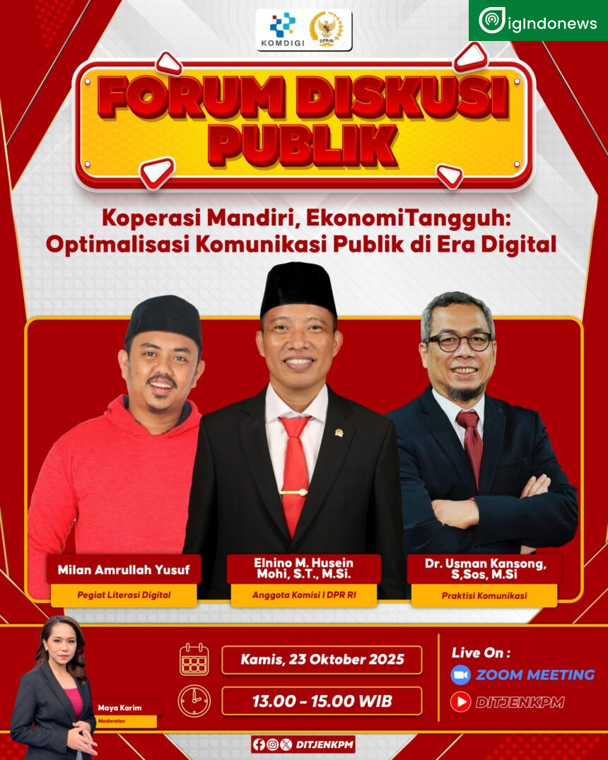 Digindonews.com-Dalam upaya memperkuat perekonomian rakyat di tengah arus digitalisasi global, koperasi diharapkan mampu beradaptasi dan mengoptimalkan peran komunikasi publik. Hal tersebut disampaikan oleh Elnino M. Husein Mohi, S.T., M.Si., Anggota Komisi I DPR RI, dalam Forum Diskusi Publik bertema “Koperasi Mandiri, Ekonomi Tangguh: Optimalisasi Komunikasi Publik di Era Digital” yang digelar pada Kamis, 23 Oktober 2025.