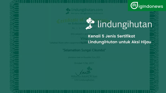 Semarang, 12 Desember 2025 — LindungiHutan, platform crowdsourcing yang berfokus pada konservasi dan aksi penghijauan di Indonesia, resmi menghadirkan lima jenis sertifikat digital yang dirancang untuk memberikan bukti transparan, kredibel, dan mudah dibagikan atas kontribusi publik maupun perusahaan dalam berbagai kegiatan pelestarian lingkungan.