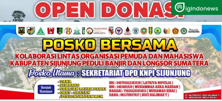 Aldo menambahkan bahwa Posko kemanusiaan ini diberi nama “Kolaborasi Lintas Organisasi Pemuda dan Mahasiswa Kabupaten Sijunjung Peduli Banjir dan Longsor Sumatera”, sebagai simbol persatuan kelompok pemuda dalam merespons isu kebencanaan secara cepat, terstruktur, dan terkoordinasi.Donasi dapat disalurkan melalui nomor rekening resmi: