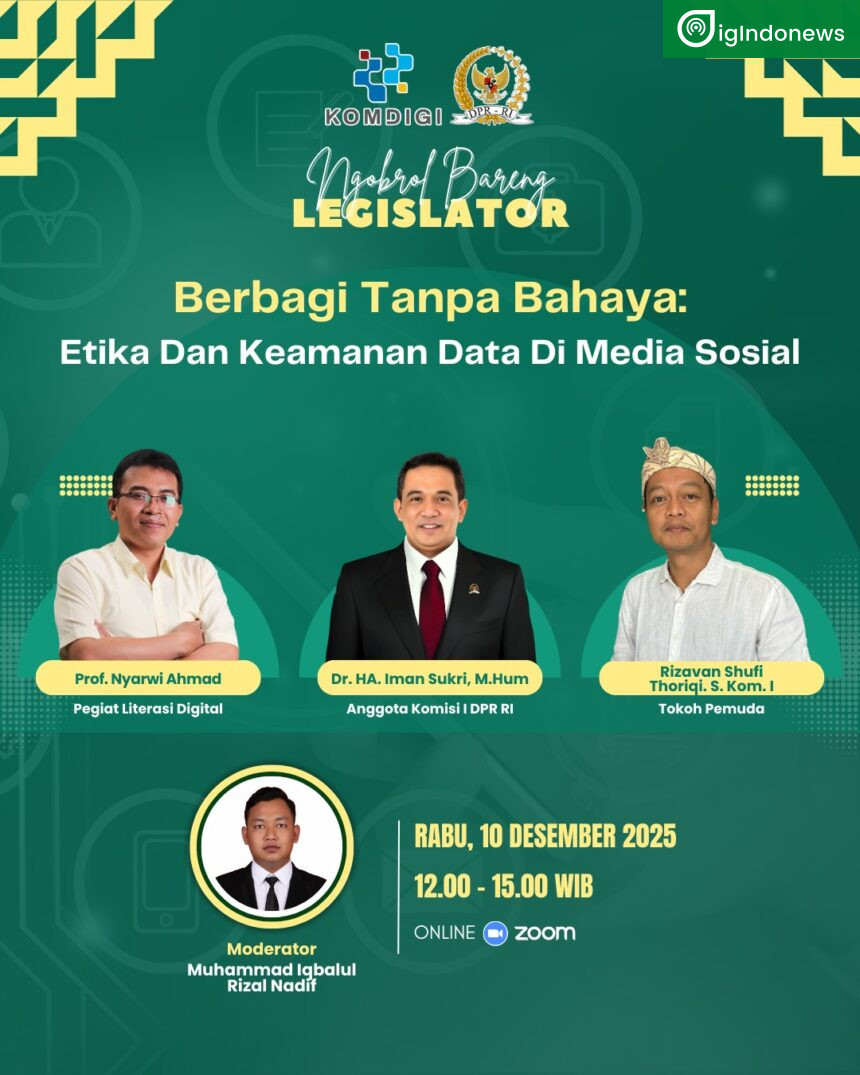 DigIndonews.com, Jakarta – Dalam sebuah forum literasi digital, tiga narasumber menyoroti semakin kompleksnya risiko dan peluang di ruang digital Indonesia. H.A. Iman Sukri, M.Hum, Anggota Komisi I DPR RI, mengingatkan bahwa media sosial kini menjadi ruang yang rentan terhadap misinformasi, ujaran kebencian, dan perundungan siber. Ia menyebut 47% laporan risiko berasal dari misinformasi, disusul ujaran kebencian 33% dan perundungan 21%. Kekhawatiran masyarakat terhadap ancaman digital pun meningkat dari 83% menjadi 88% dalam setahun terakhir, sementara 70% pengguna mengaku kesulitan membedakan konten asli dan rekayasa AI.