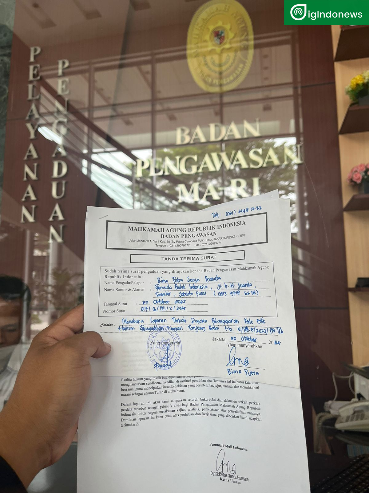 Jakarta, 20 Oktober 2025 — Organisasi Pemuda Peduli Indonesia (PPI) secara resmi melayangkan surat kepada Komisi Yudisial (KY) dan Badan Pengawasan Mahkamah Agung (Bawas MA) di Jakarta. Dalam surat tersebut, PPI mendesak agar kedua lembaga pengawas peradilan itu segera mengusut tuntas dugaan rekayasa perkara perdata di Pengadilan Negeri Tanjung Balai Asahan dengan nomor perkara 8/Pdt.G/2023/PN Tjb.