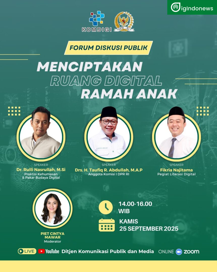 Digindonews.com-Perlindungan anak di dunia digital menjadi perhatian utama dalam webinar “Menciptakan Ruang Digital Ramah Anak” yang diselenggarakan pada Kamis, 25 September 2025 pukul 14.00–16.00 WIB. Praktisi komunikasi Dr. Usman Kansong dan Ketua PCFNU Purbalingga Ika Hariyanti, S.Sos, sepakat bahwa menciptakan ruang digital ramah anak membutuhkan peran bersama negara, platform digital, orang tua, pendidik, hingga komunitas.