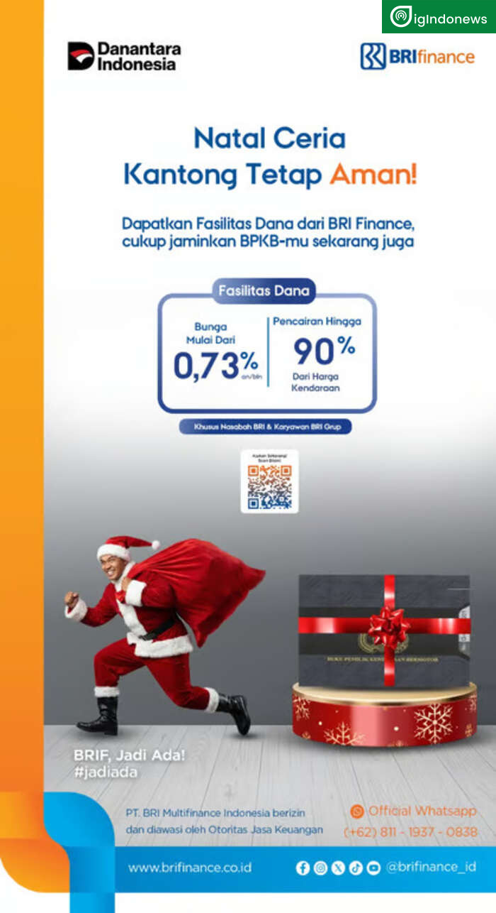 Akhir tahun kerap menjadi periode dengan tekanan pengeluaran tambahan, sehingga membutuhkan pengelolaan keuangan yang lebih cermat. Menjawab kebutuhan tersebut, BRI Finance menawarkan fasilitas pendanaan dengan jaminan BPKB kendaraan melalui skema yang kompetitif, proses yang cepat, serta akses yang semakin luas. Melalui program BRI Flash, masyarakat dapat memperoleh pembiayaan dengan bunga mulai dari 0,73% per bulan, pencairan dana hingga 90% dari nilai kendaraan, serta pilihan tenor fleksibel mulai dari 1 hingga 4 tahun, sehingga berbagai kebutuhan liburan dan pengeluaran akhir tahun dapat dikelola secara lebih strategis.