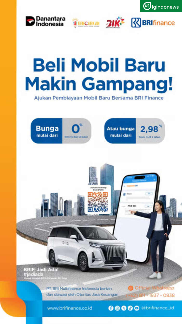 Digindonews.com – PT BRI Multifinance Indonesia (“BRI Finance”) kembali menghadirkan inovasi pembiayaan kompetitif melalui program Kredit Kendaraan Bermotor (KKB) mobil baru dengan bunga khusus 0% per tahun. Inisiatif ini hadir di tengah tren kenaikan harga kendaraan baru, sekaligus menjadi upaya strategis perusahaan untuk memperluas akses masyarakat terhadap solusi pembiayaan yang ringan, aman, dan fleksibel.