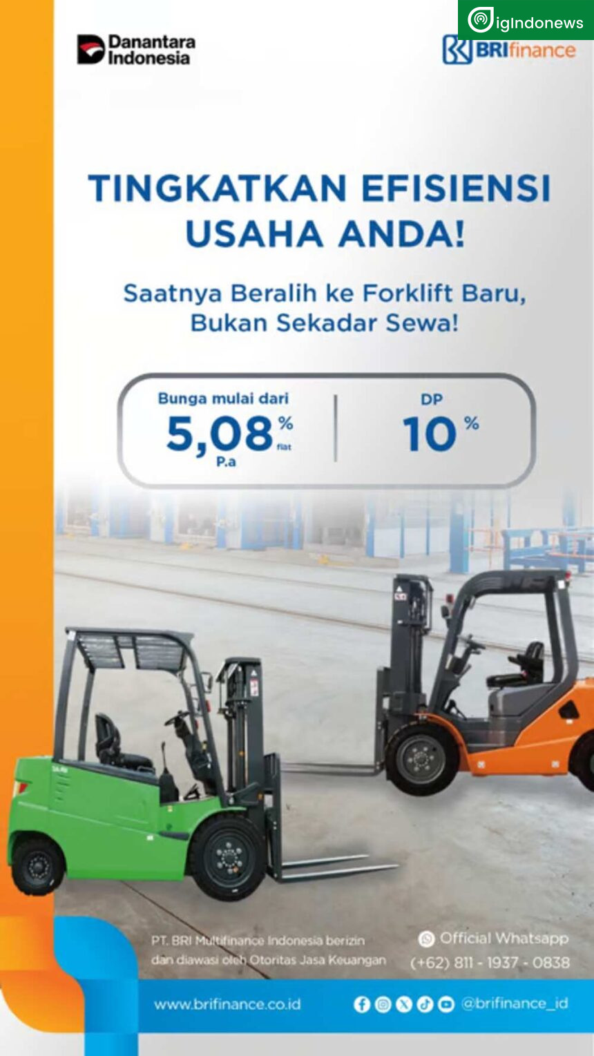 Tak hanya itu, BRI Finance menghadirkan promo menarik untuk kendaraan. Bagi mobil baru, tersedia bunga mulai dari 0% dengan tenor 6 dan 12 bulan khusus nasabah BRI. Sementara mobil bekas ditawarkan dengan bunga mulai dari 0,8% per bulan, dan sepeda motor baru dengan bunga 0,7% per bulan. Beragam opsi ini memastikan nasabah dapat memilih pembiayaan sesuai kebutuhan, baik untuk tujuan konsumtif maupun produktif.