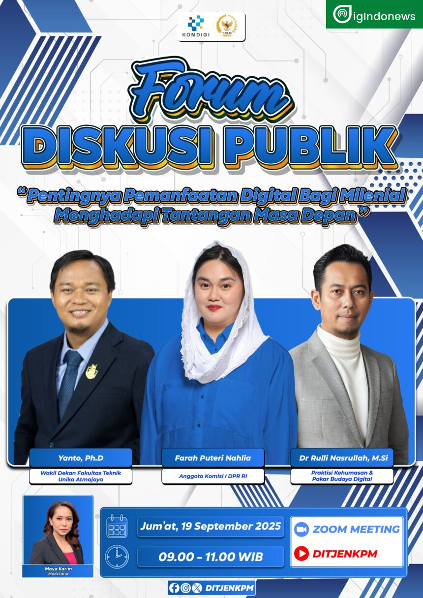 Digindonews.com-Dalam Forum Diskusi Publik bertajuk “Ruang Digital Anak Aman dan Sehat” yang digelar pada Jumat, 19 September 2025, pegiat literasi digital Yanto, Ph.D., menegaskan bahwa pemanfaatan teknologi digital oleh milenial bukan sekadar mengikuti tren, melainkan menyiapkan masa depan bangsa.